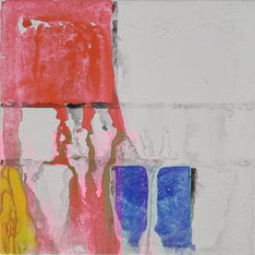 For these series, I built a new setup in which stone plates were placed beneath the canvas, close to its surface. Around the work, I constructed a high frame to contain the fragments of ice within the boundaries of the piece. The working method again originated from the same silicone mould used in no. 1, filled with the same coloured water.