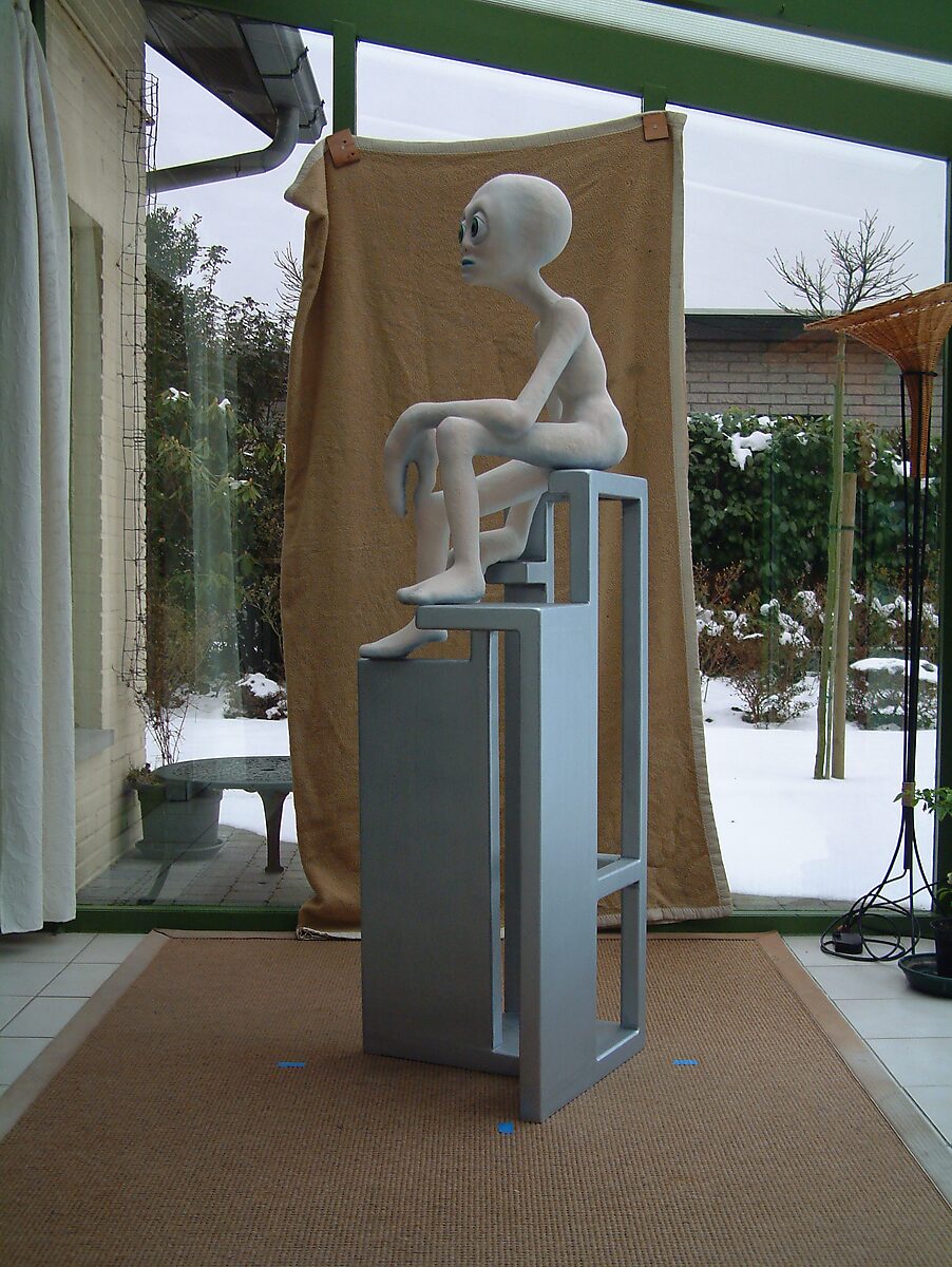 Een buitenaards wezen zit op een sokkel. In 2013 werd het beeld ontworpen als een denkexperiment: bezoekers zouden uitgenodigd worden om pleisters op het wezen te kleven. De handeling moest de manier blootleggen waarop mensen problemen proberen te verhelpen — met zichtbare zorg, maar zonder de kern aan te raken. Het concept bleef toen nog onuitgevoerd, als een idee in afwachting van contact.