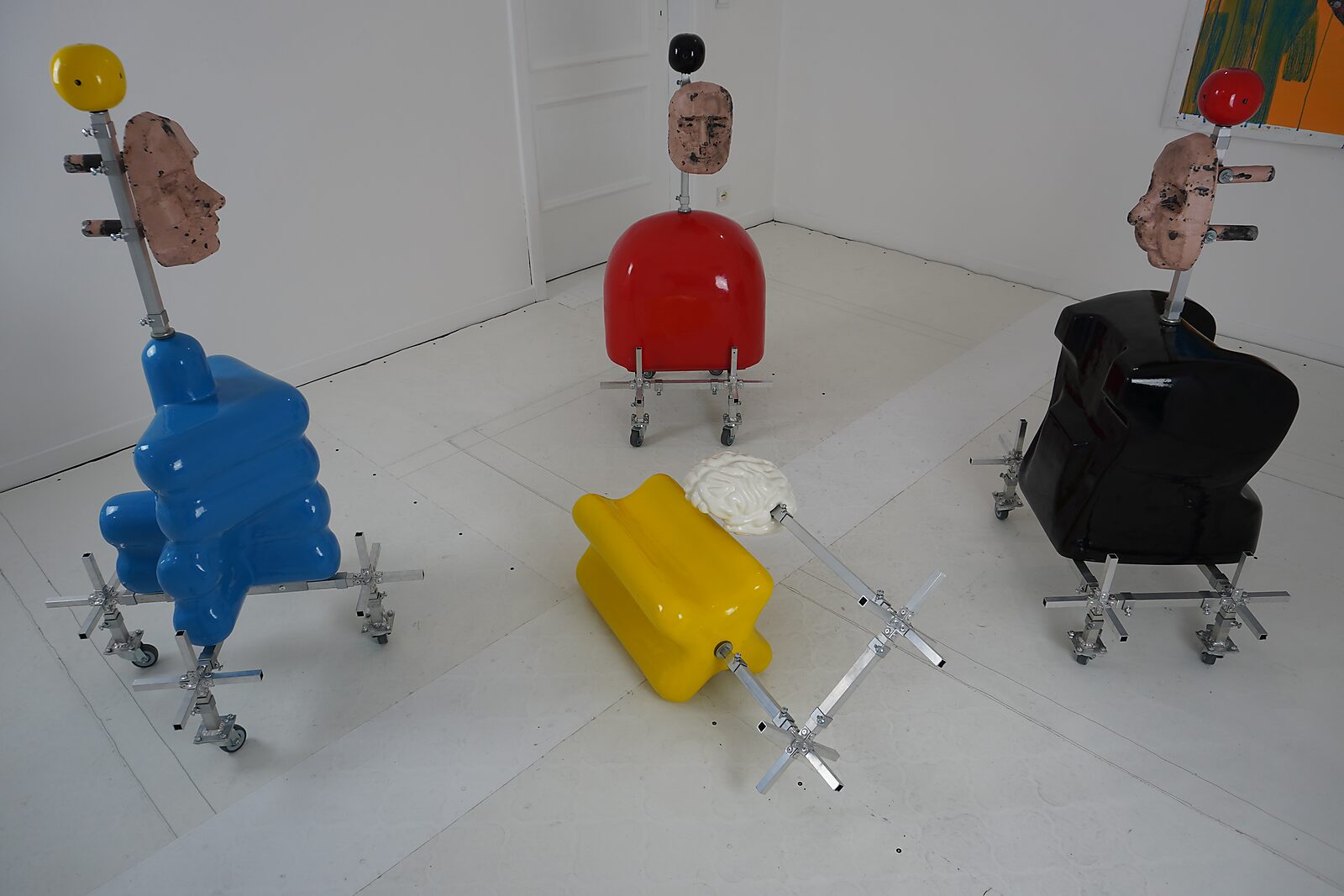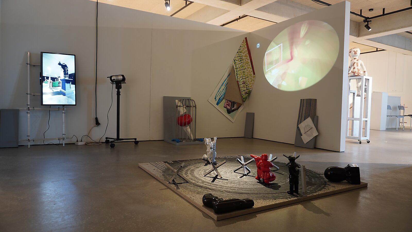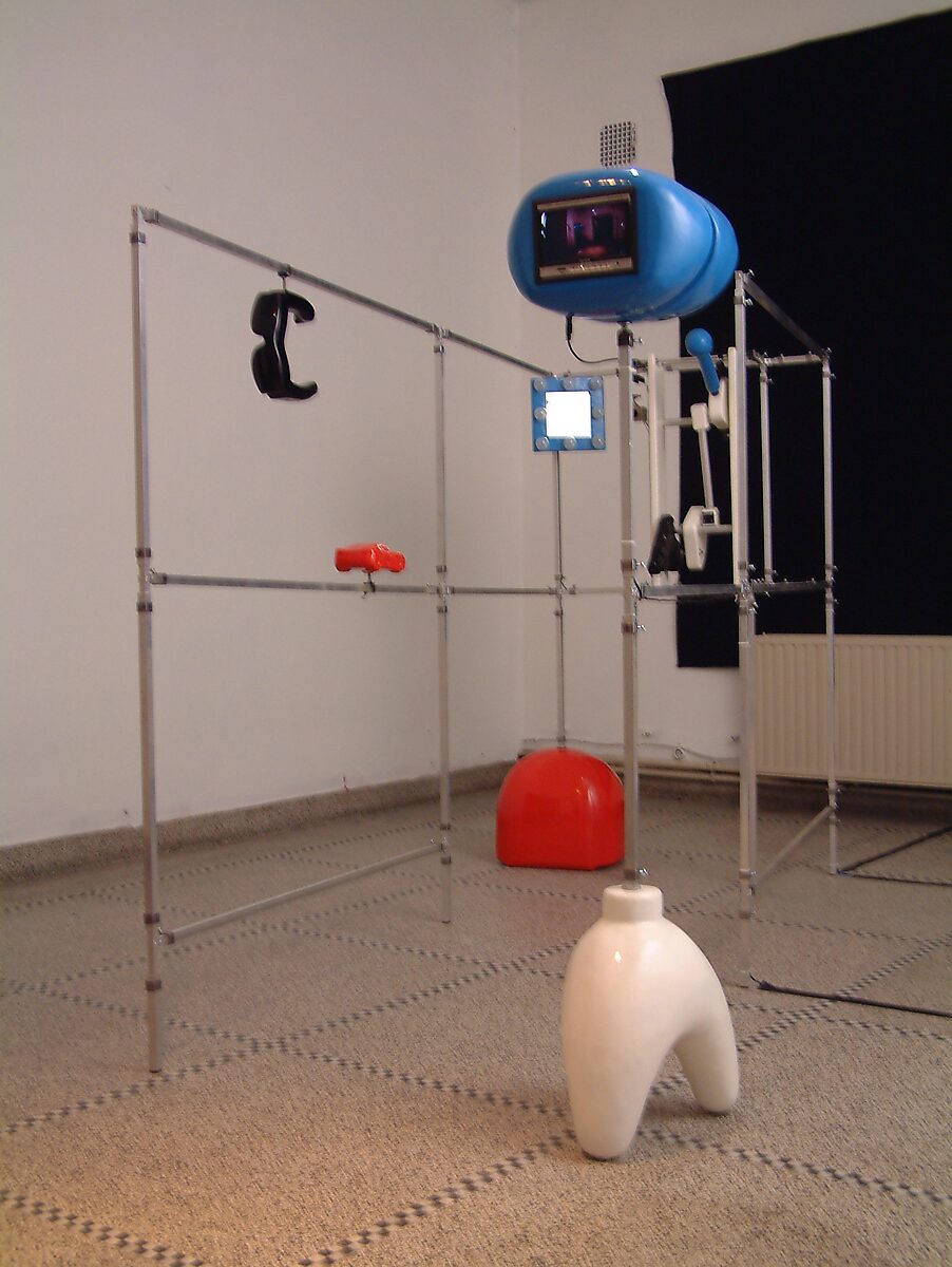 Thirty-six small (25x25x25cm), recognisable polyester forms serve as building blocks for constructions, videos, and installations. After each use, they can be dismantled and prepared again for a new configuration.