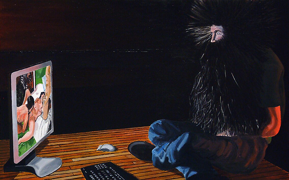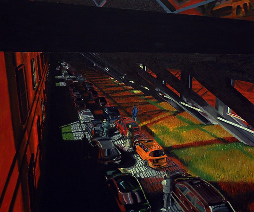 Indoor trafficjam: safety camera view - 60x50cm - Indoor trafficjam: driver view - 70x60cm - Indoor trafficjam: mouse view - 90x70cm - The modern caveman view - 60x50cm - The modern caveman; golden cage view - 70x60cm - The modern caveman: porn view - 80x50cm - The news: outside view - 50x40cm - The news: inside view - 90x70cm - The news: Martine's view - 100x50cm