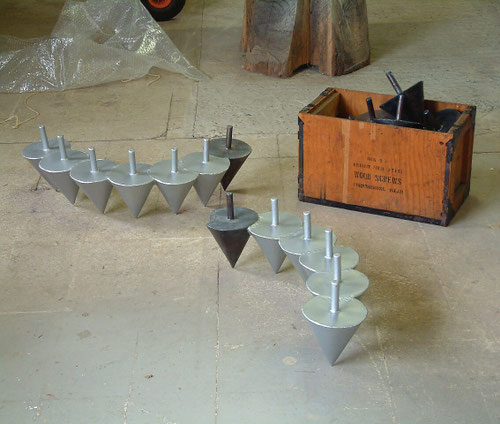 The metal sculpture Spinning Tops departs from the suggestion of a spinning top. The form refers not only to a childhood game but also to a deeper archetype: rotation as primal form.