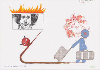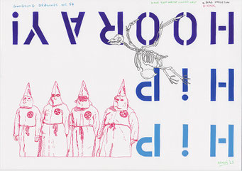 In de tekeningen hoeft niet noodzakelijk enige logica of diepere betekenis te zitten. Het eindresultaat hangt af van wat Google aanlevert. De tekening wordt getekend en is wat ze is. Zowel in zijn keuze van de zoektermen als in zijn selectie van de afbeeldingen behoudt de kunstenaar zich het recht voor om even (on)logisch, associatief of intuïtief te zijn als Google zelf. De techniek doet denken aan het ‘psychisch automatisme’ en de ‘écriture automatique’ van de dadaïsten en surrealisten een kleine honderd jaar geleden. Zij wilden de controle van de rede uit hun kunst bannen en er het onderbewuste in aan het woord laten. ‘De surrealist verzint niets, hij vindt alles’, schreef André Breton. Het verschil met Hendrickx is dat hij de bouwstenen voor zijn tekeningen niet in zijn onderbewuste vindt, maar op het internet. (iv)