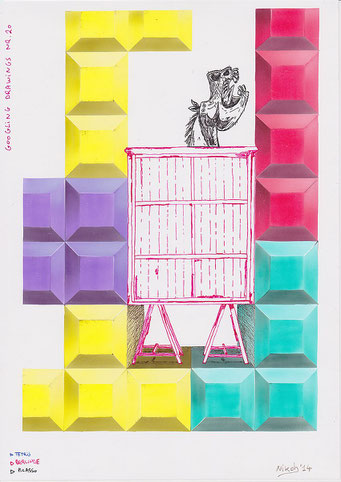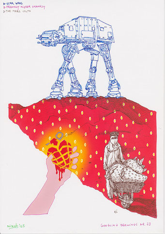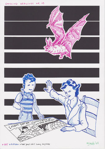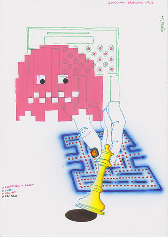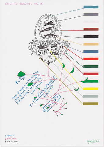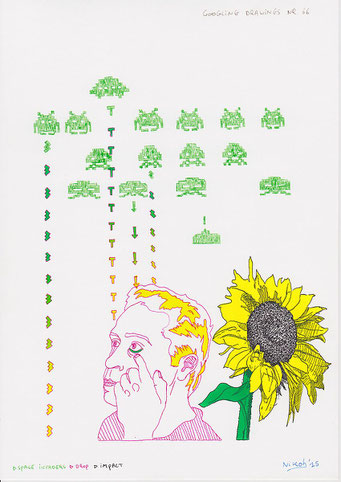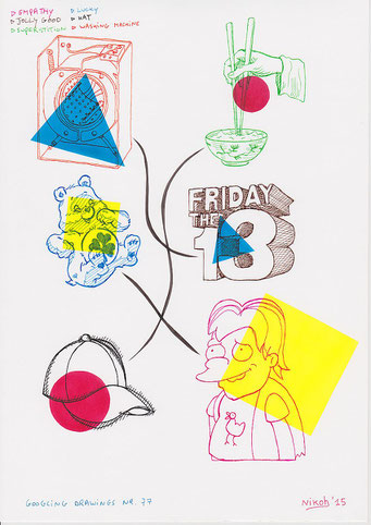 Voor deze reeks van 80 tekeningen zoekt de kunstenaar naar afbeeldingen op het internet met behulp van de zoekmachine Google. Hij tikt een woord of een combinatie van woorden in en specificeert eventueel een kleur of type afbeelding.