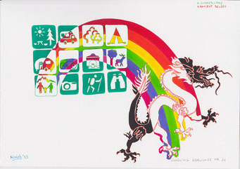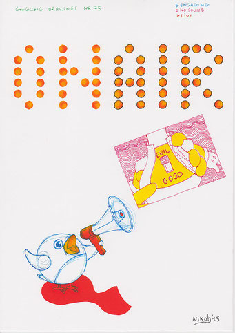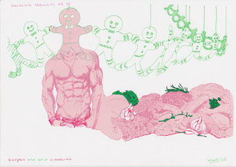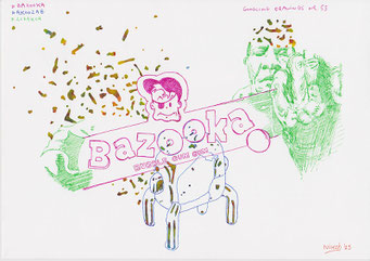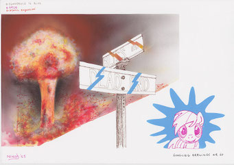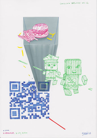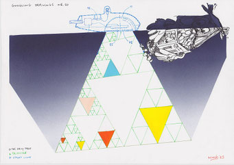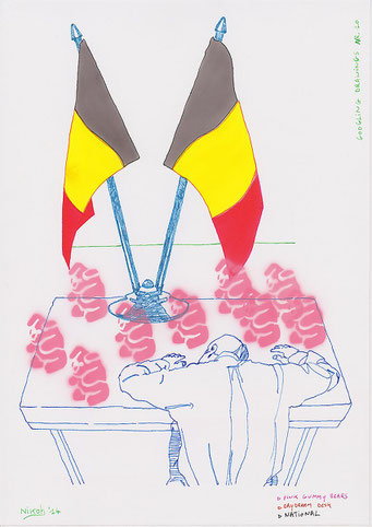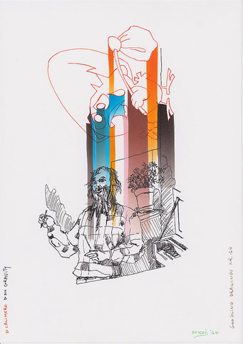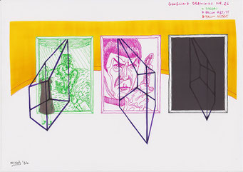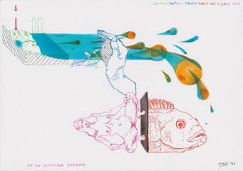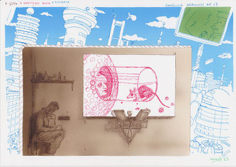 Materialen: papier, inkt, airbrushverf