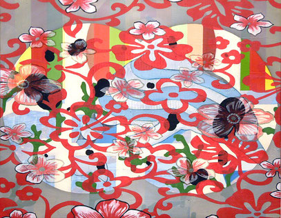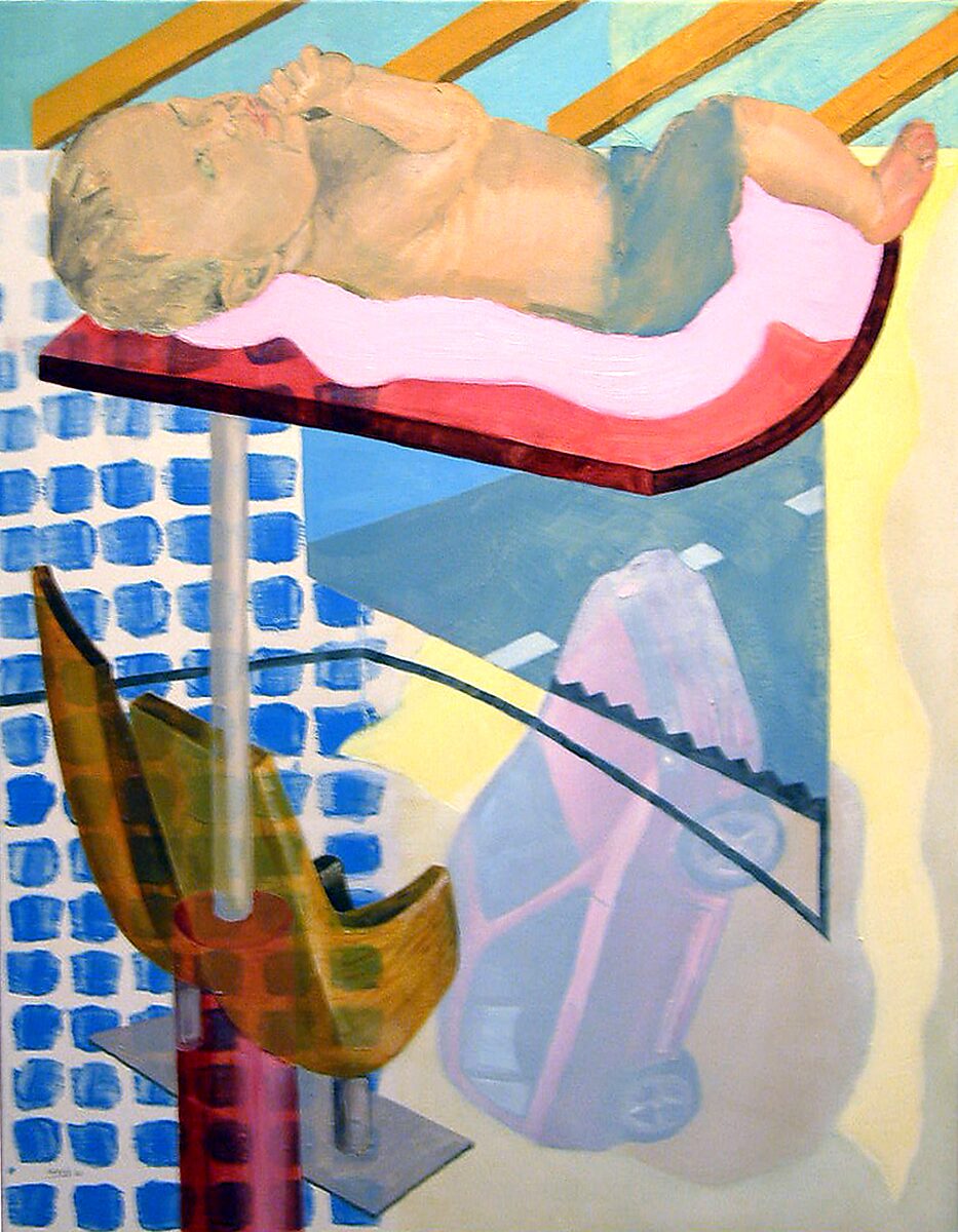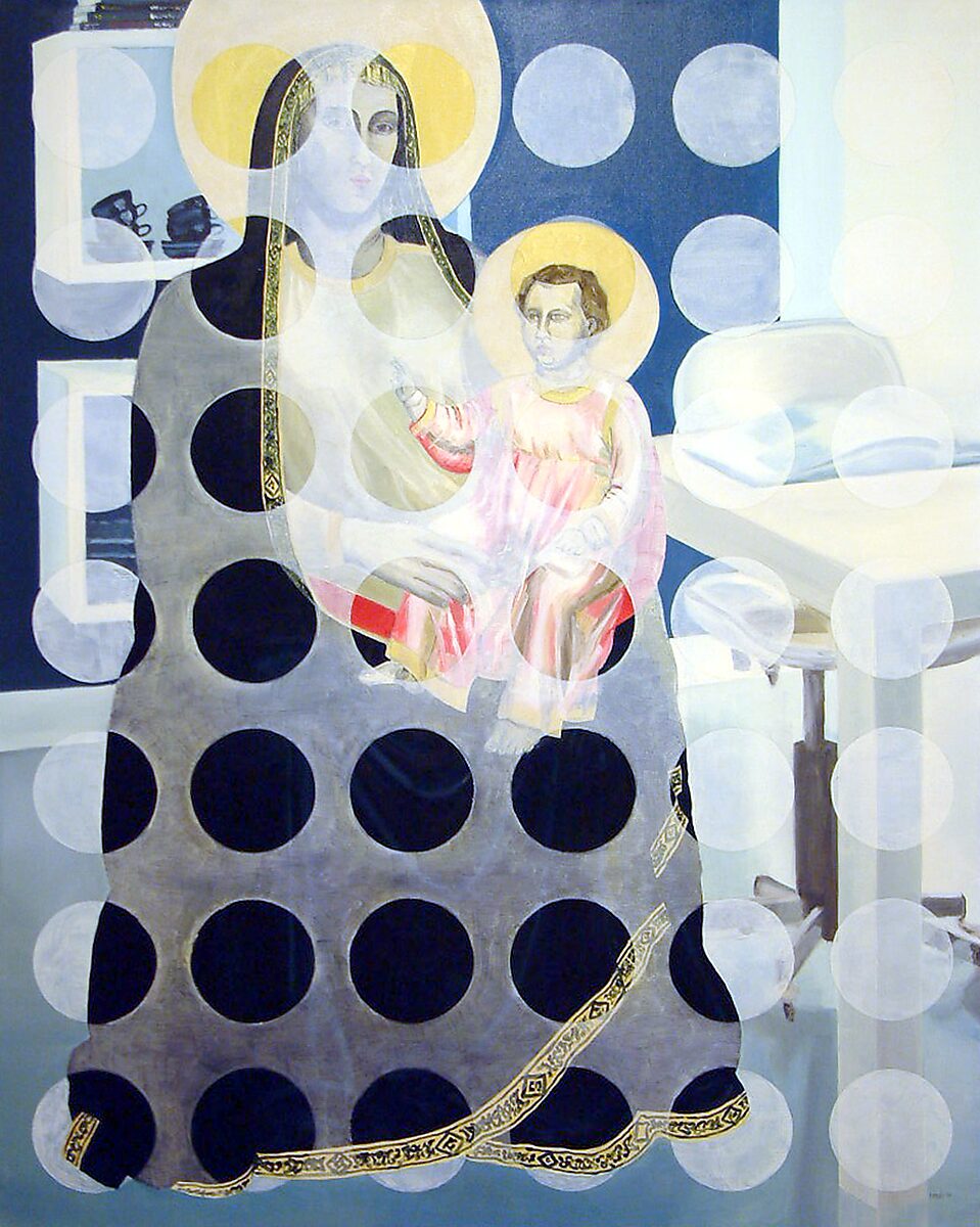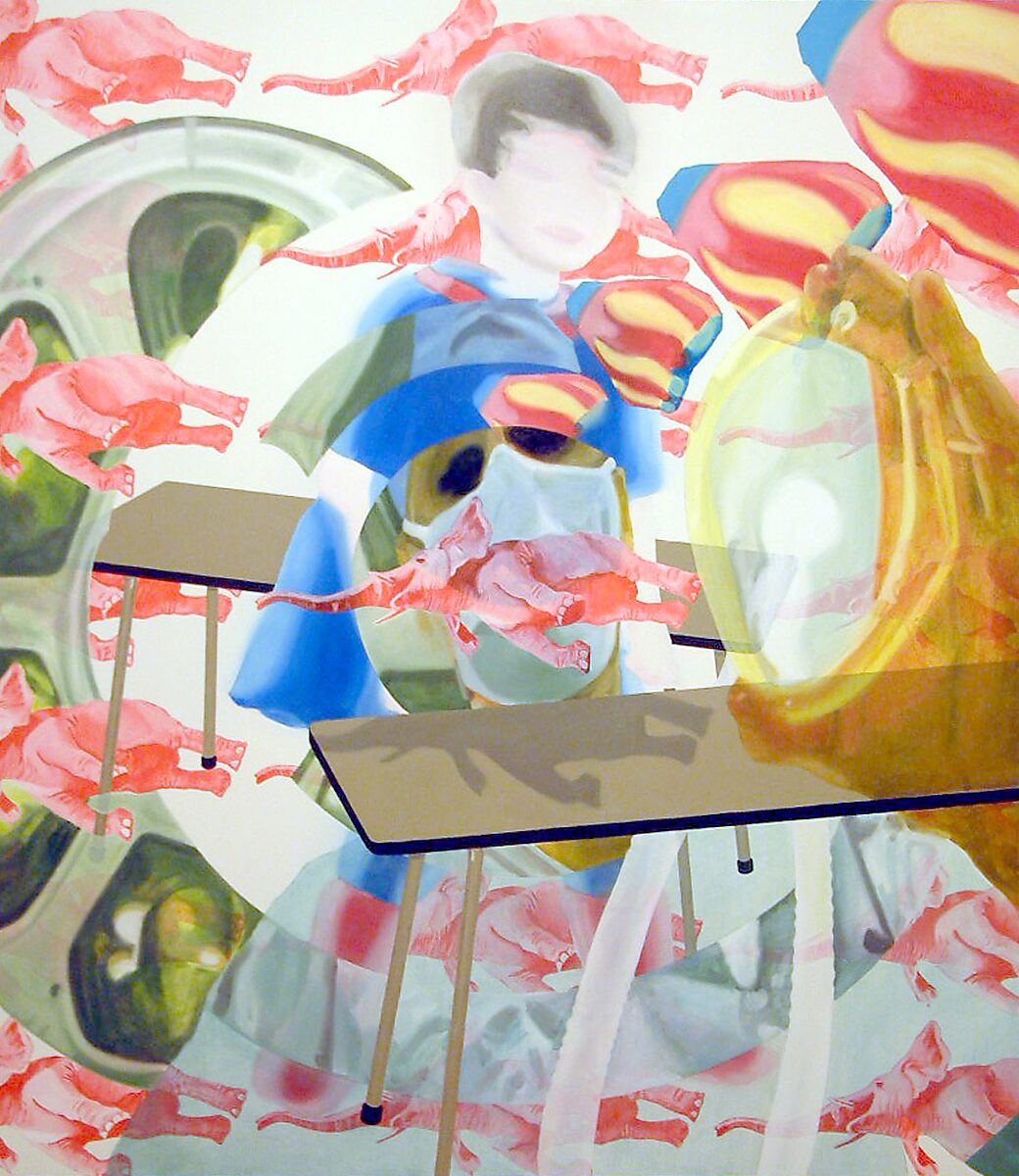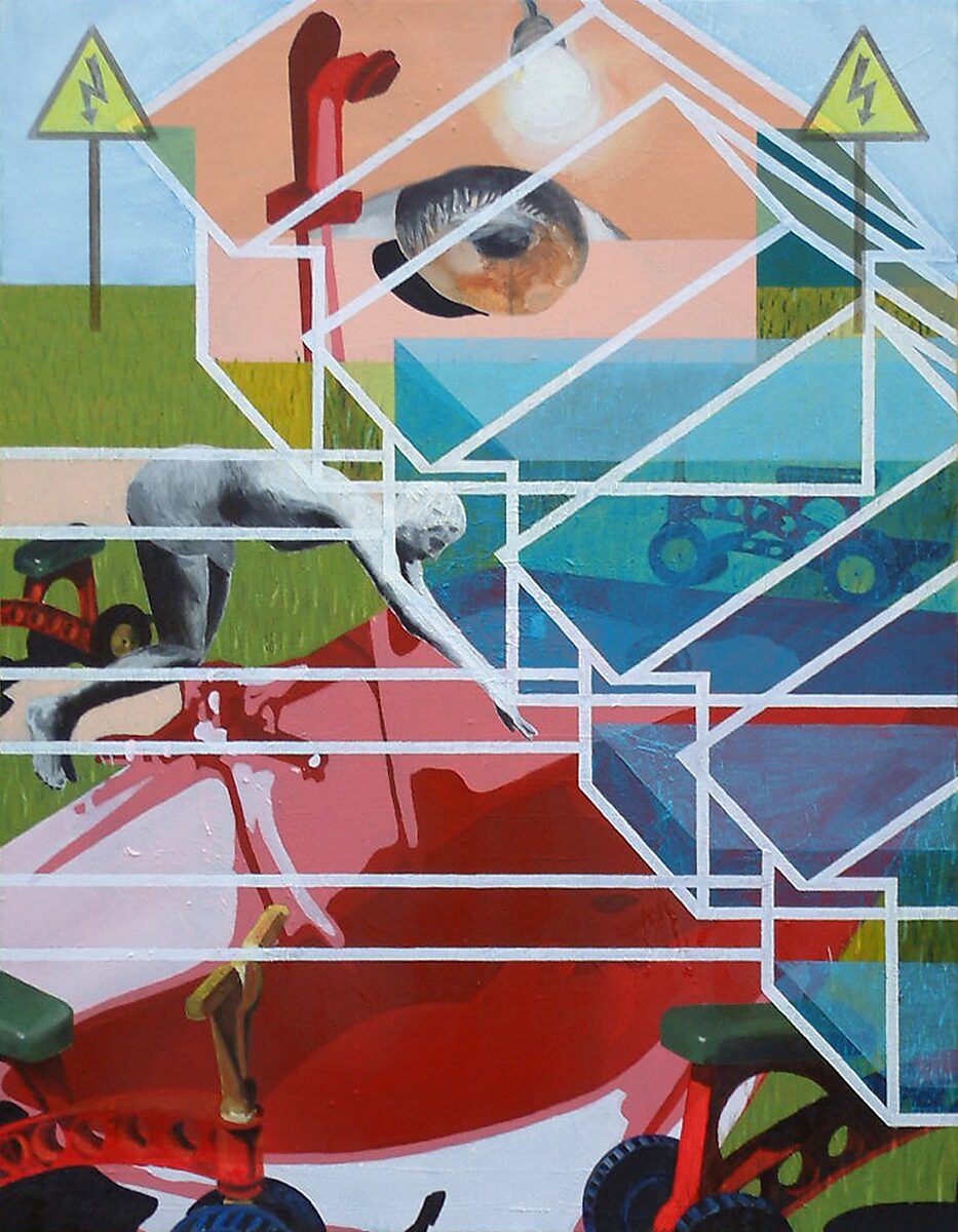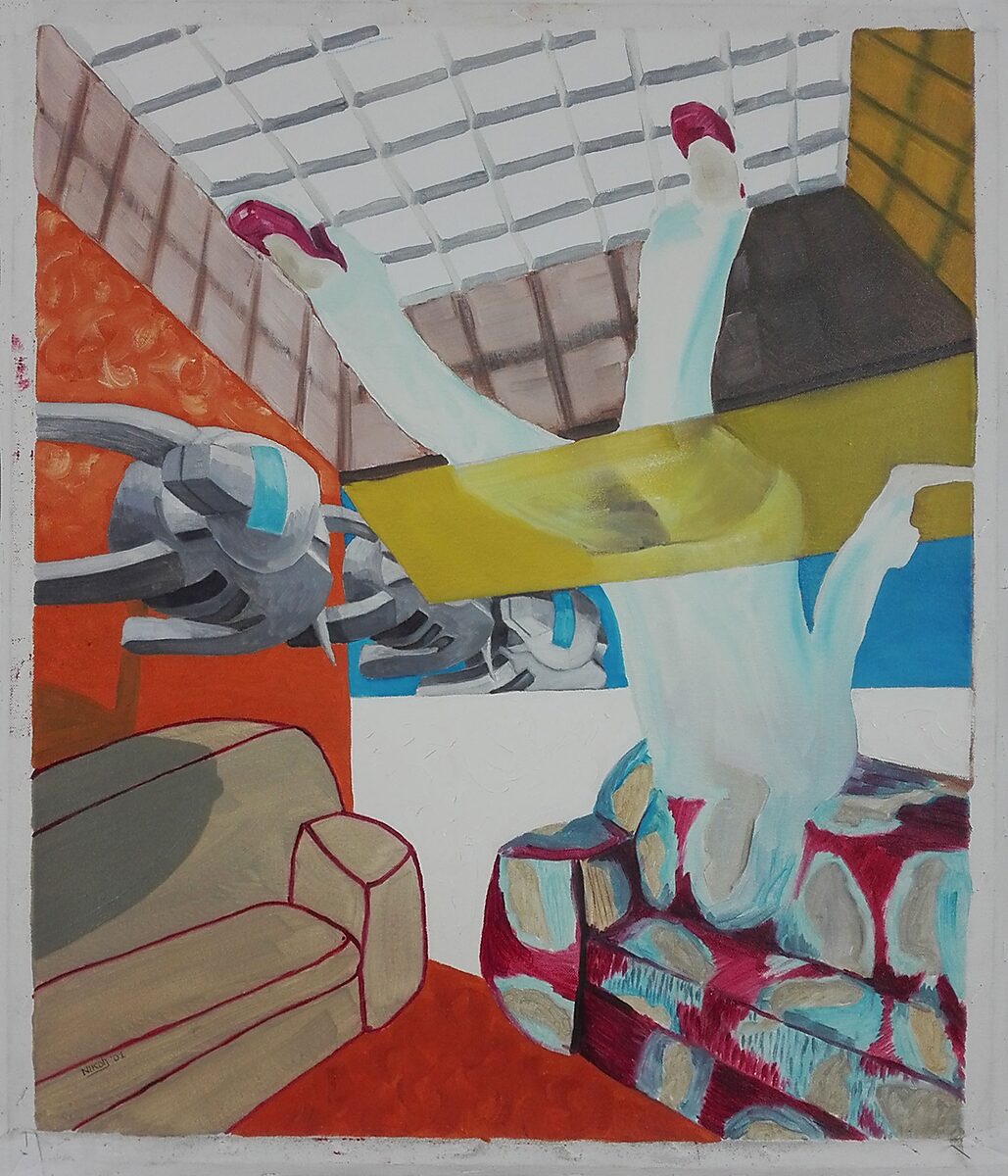 De veelheid aan informatie in onze samenleving vormt voor mij het vertrekpunt in deze reeks. Ik werk in lagen: na elke schilderlaag leg ik het beeld digitaal vast en bewerk het verder, zodat compositorische beslissingen kunnen worden verfijnd en geaccentueerd. Deze methode bouwt voort op mijn eerdere experimenten met gemengde technieken, maar hier beschouw ik de digitale bewerking als een volwaardig onderdeel van het schilderproces. Transparantie en opbouw laten het gelaagde ontstaan van het werk zichtbaar aanwezig blijven.