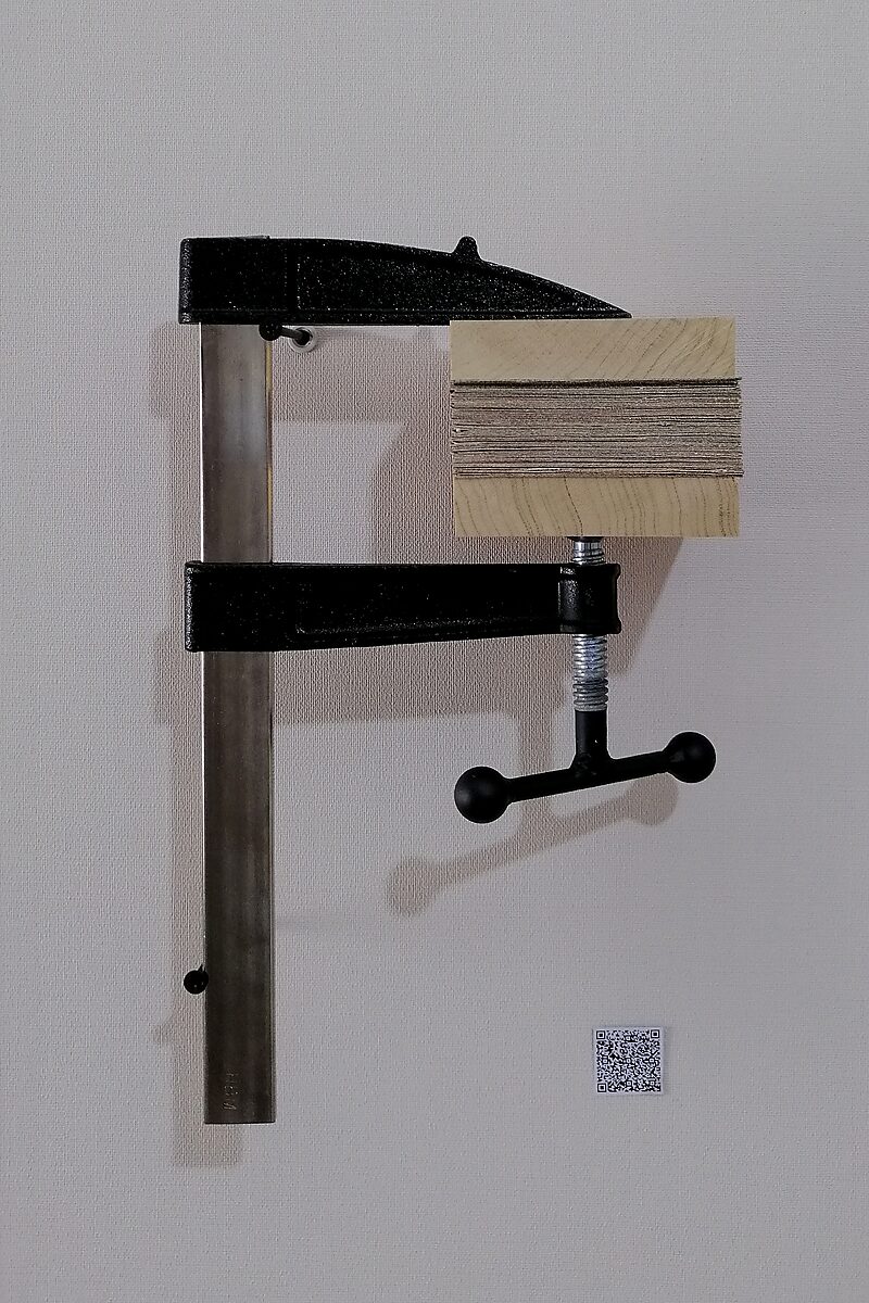 Dit werk, dat in negen varianten bestaat, toont een lijmklem met inhoud: een schilderij dat in stukken van 10 × 10 cm werd geknipt en ertussen geperst. In de afbeeldingen hiernaast ziet u de lijmklemmen, gevolgd door een foto van hun oorspronkelijke staat.