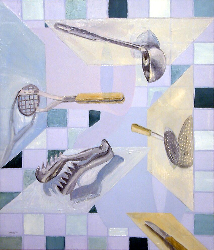 Bij de schilderijen die nog in mijn bezit zijn, werden de spieramen verwijderd. Rondom het doek zijn nestelringen aangebracht.