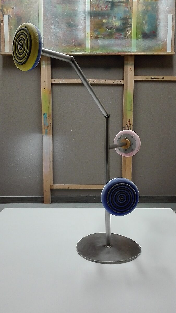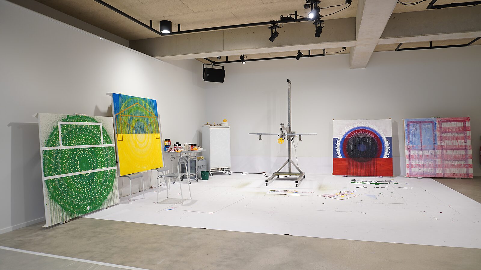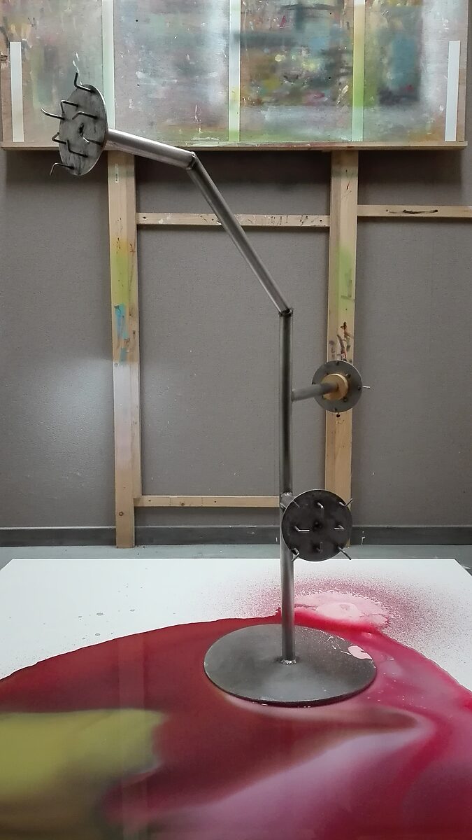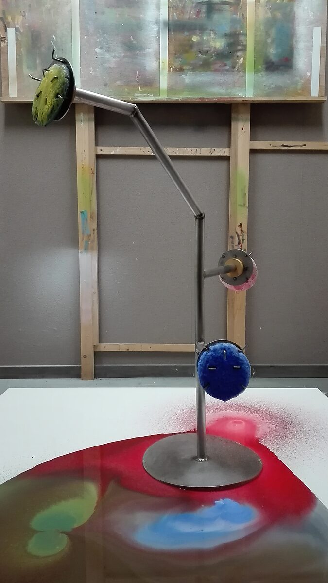 The setup allows for great variation: the thickness of the paint, the tilt of the canvas, the order in which the discs melt, or the height of the targets can all be adjusted. When the installation is active during an exhibition, the painting process can be experienced live.