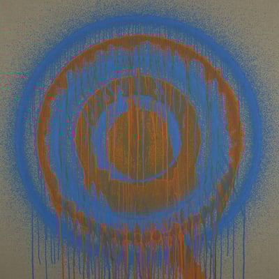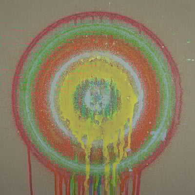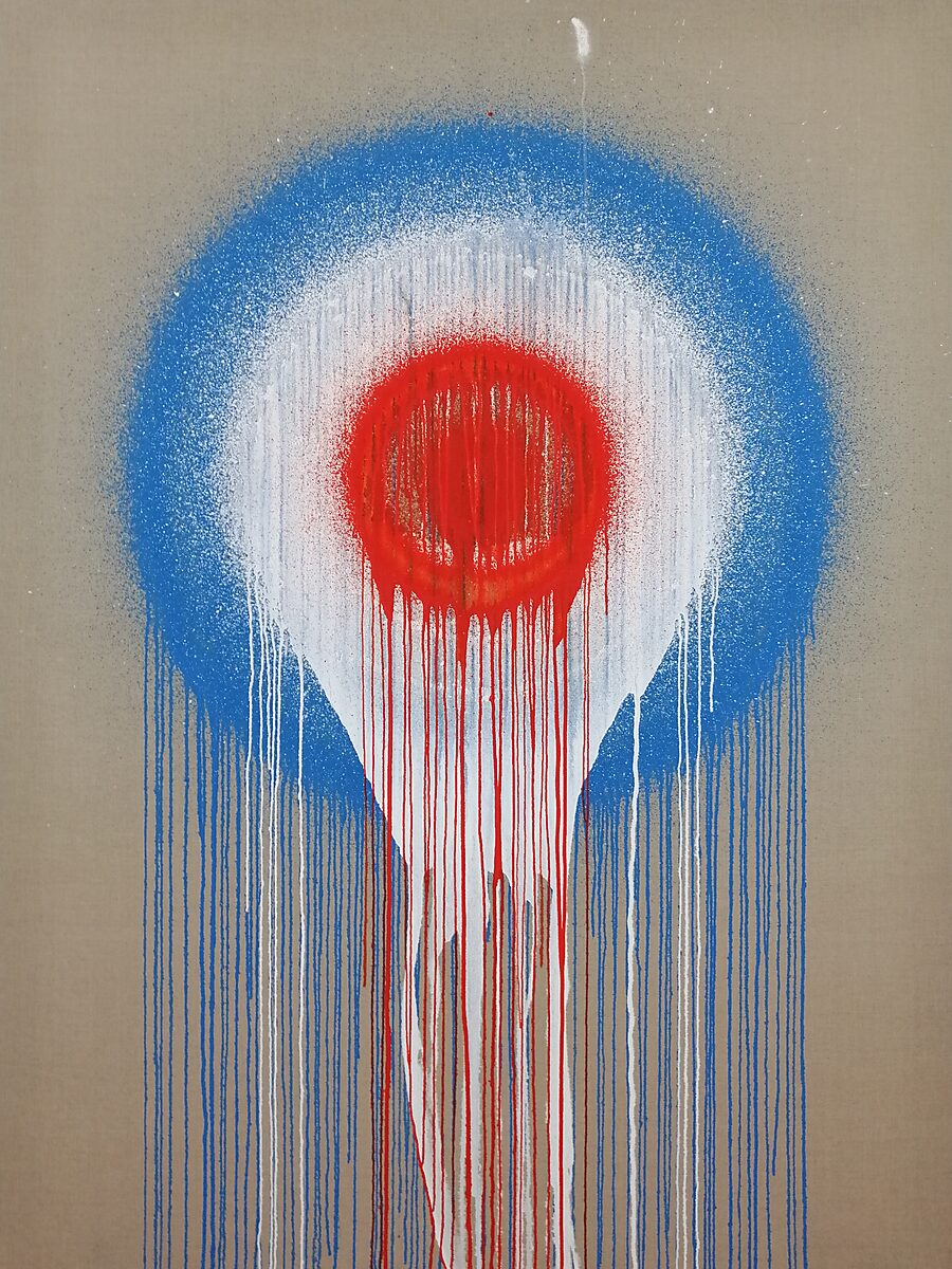 The series Melting Targets is a long-term exploration of change, time, and intention. Each work begins with a simple process: coloured ice melts on canvas. What follows is a play between control and surrender — between purposeful action and the randomness of physical processes.