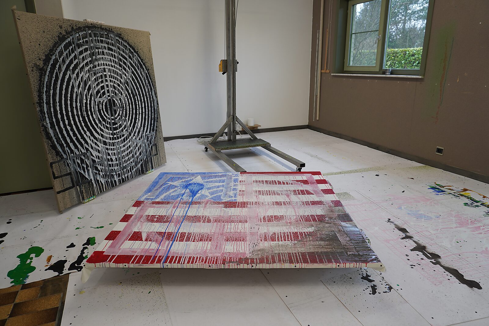 What began in 2024 as a process during the exhibition Transformation Studio No. 1 (2024) has evolved in my studio into a confrontation between textiles and ideology.