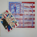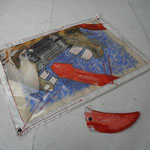 Within the framework of Drawing in Motion, the oil painting and the drawing were mounted together on the drawing board. The drawing received additional coloring to merge more strongly with the board.