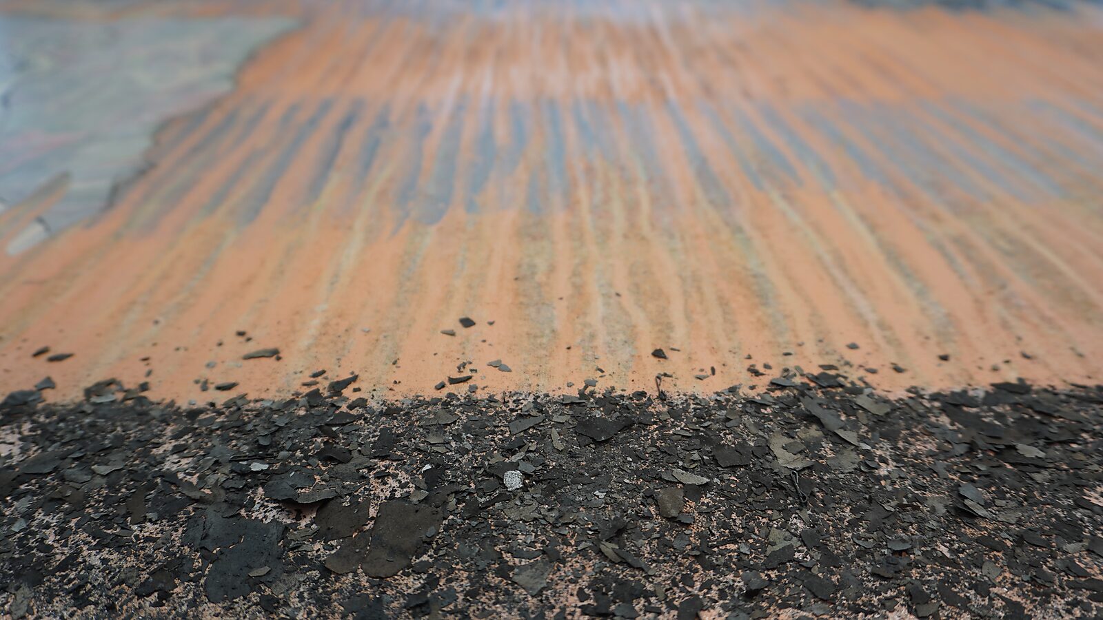 Later transformeerde ik de kleuren naar een metaaltint en een vleeskleur. Ik bracht de verf aan en liet ze vrij naar beneden lopen. Robotman kreeg subtiel de metaaltint, Hangende man de kleur van vlees.