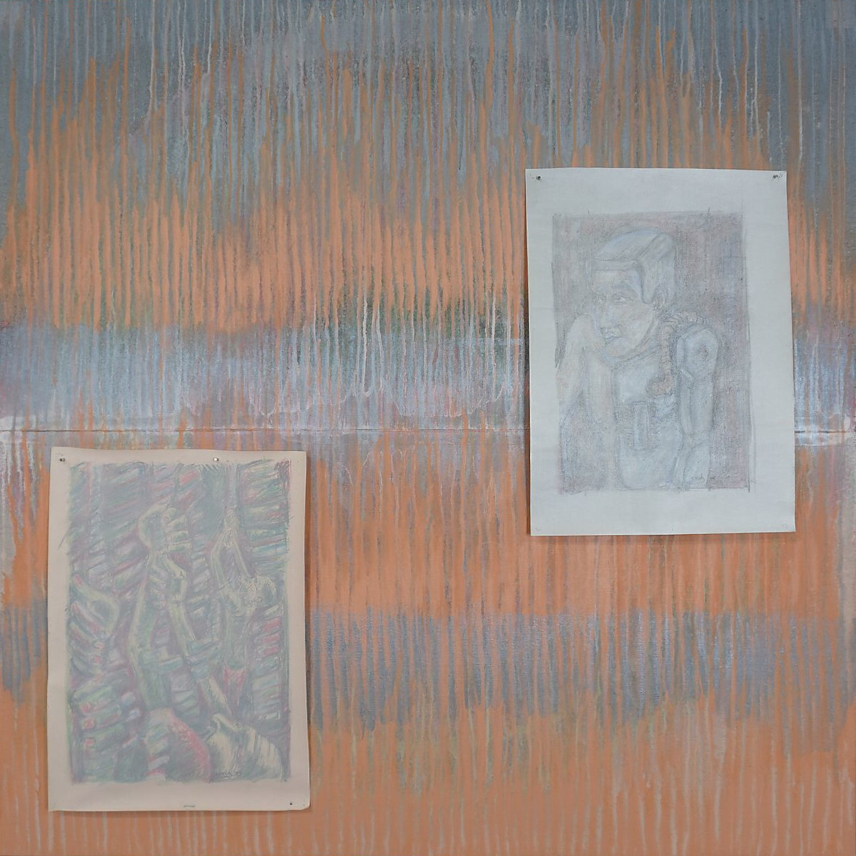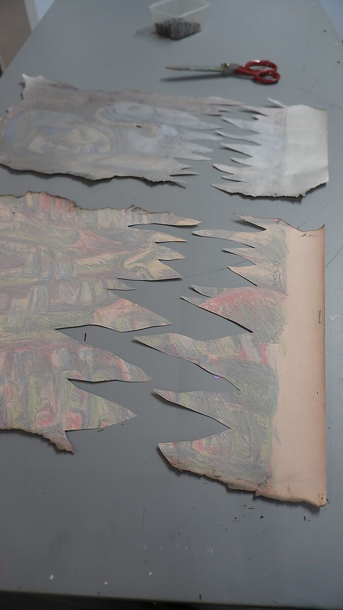 Deze tekeningen stammen uit de periode waarin ik aan de kunstschool begon. Het zijn reeksen waarin ik experimenteerde met verschillende methodes. Hier worden ze door elkaar getoond. Wanneer ze nog in mijn bezit zijn, wil ik ze op een organische manier onderwerpen aan transformatie, zoals beschreven in het manifest. Zo breng ik deze werken opnieuw in beweging: door ze te hergebruiken, samen te voegen, te laten samensmelten, eroverheen te tekenen, de achterkant te benutten of de materie zelf te laten veranderen.