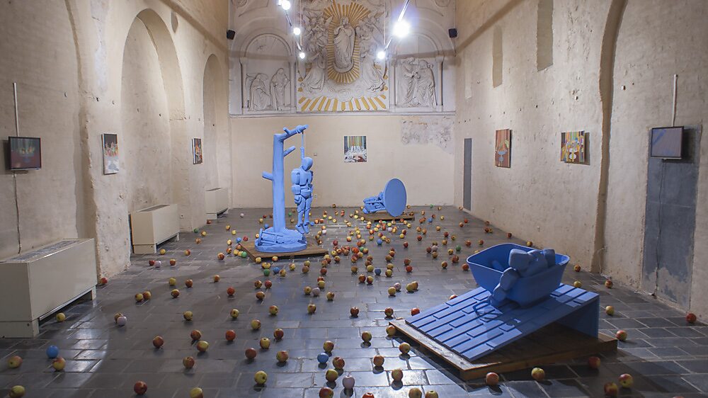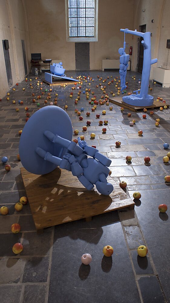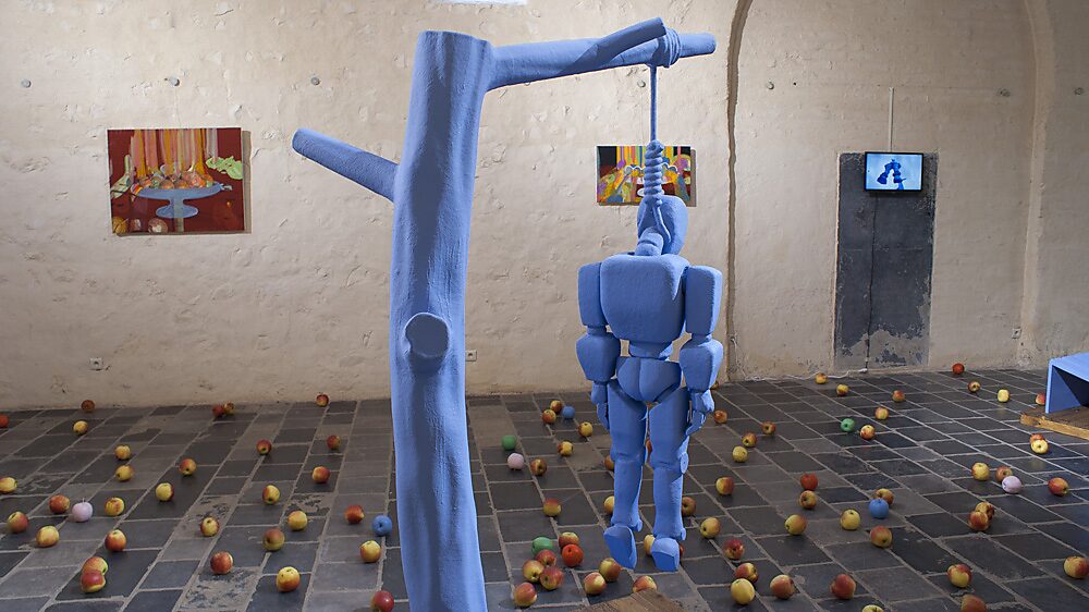 Tijdens de tentoonstelling Strange Fruit in de Gasthuiskapel, Borgloon, ervaar je hoe verschillende werken uit Robot in ontkenning samenkomen tot één geheel. De ruimte wordt een plaats van confrontatie: tussen het organische en het artificiële, tussen het vergankelijke en het mechanische.