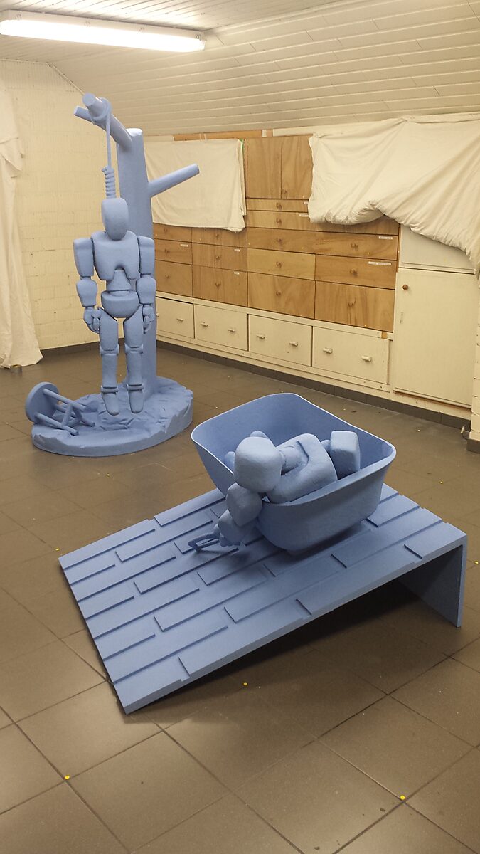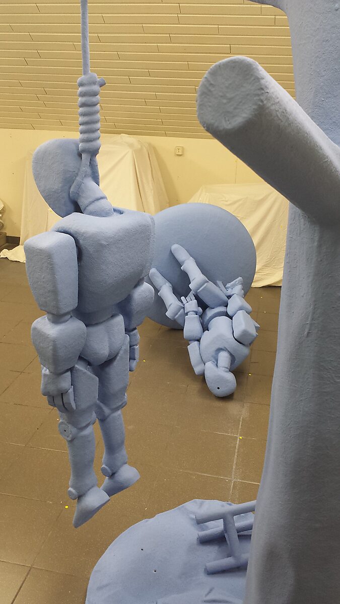 In de eerste fase van het project zie je drie sculpturen van een robot die op drie verschillende manieren probeert zelfmoord te plegen. De werken verbeelden de botsing tussen rationele technologie en irrationele emotie, tussen mechanische logica en existentiële wanhoop.