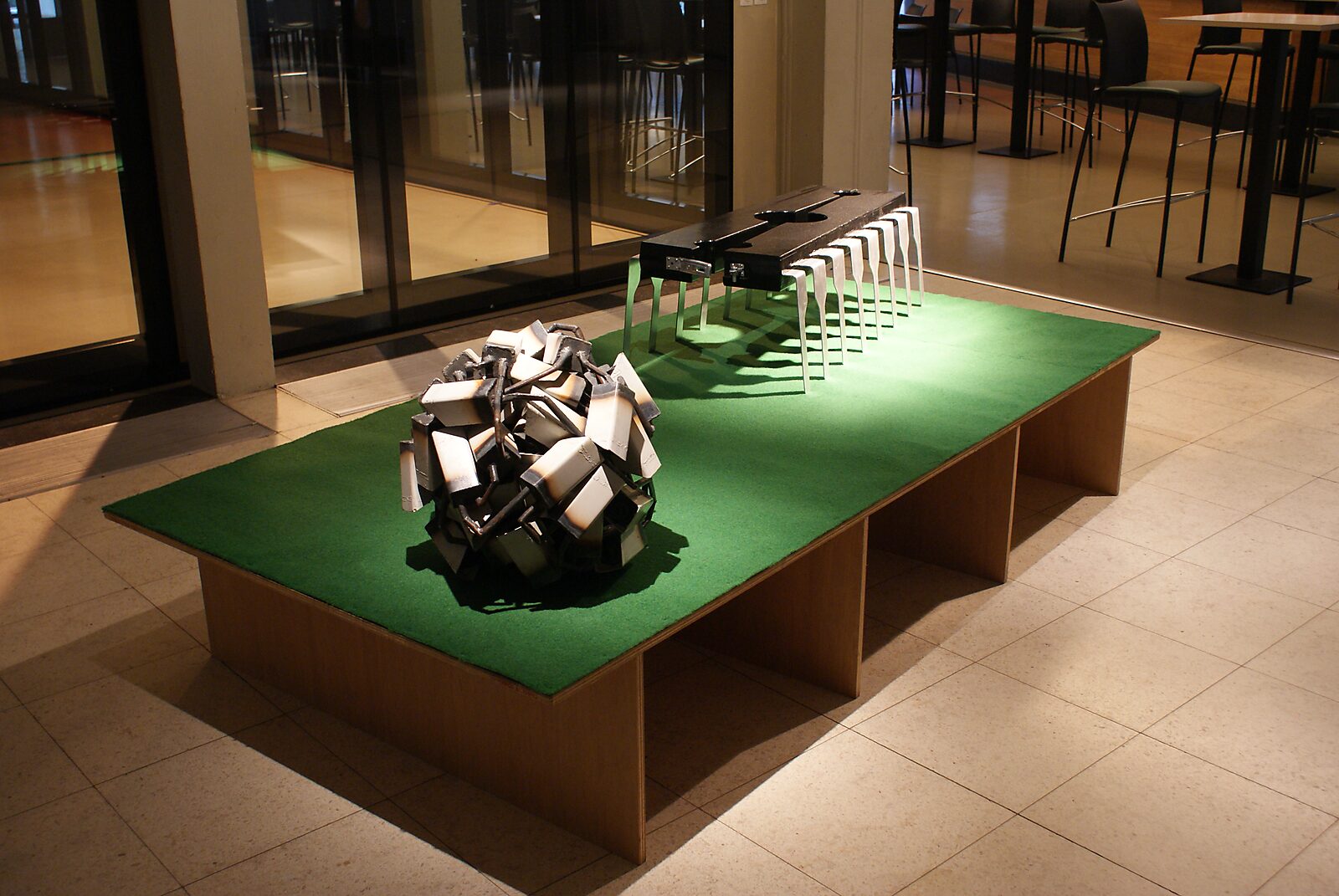 Materialen: plaatstaal 1.5mm, gelast, hout, vinyl