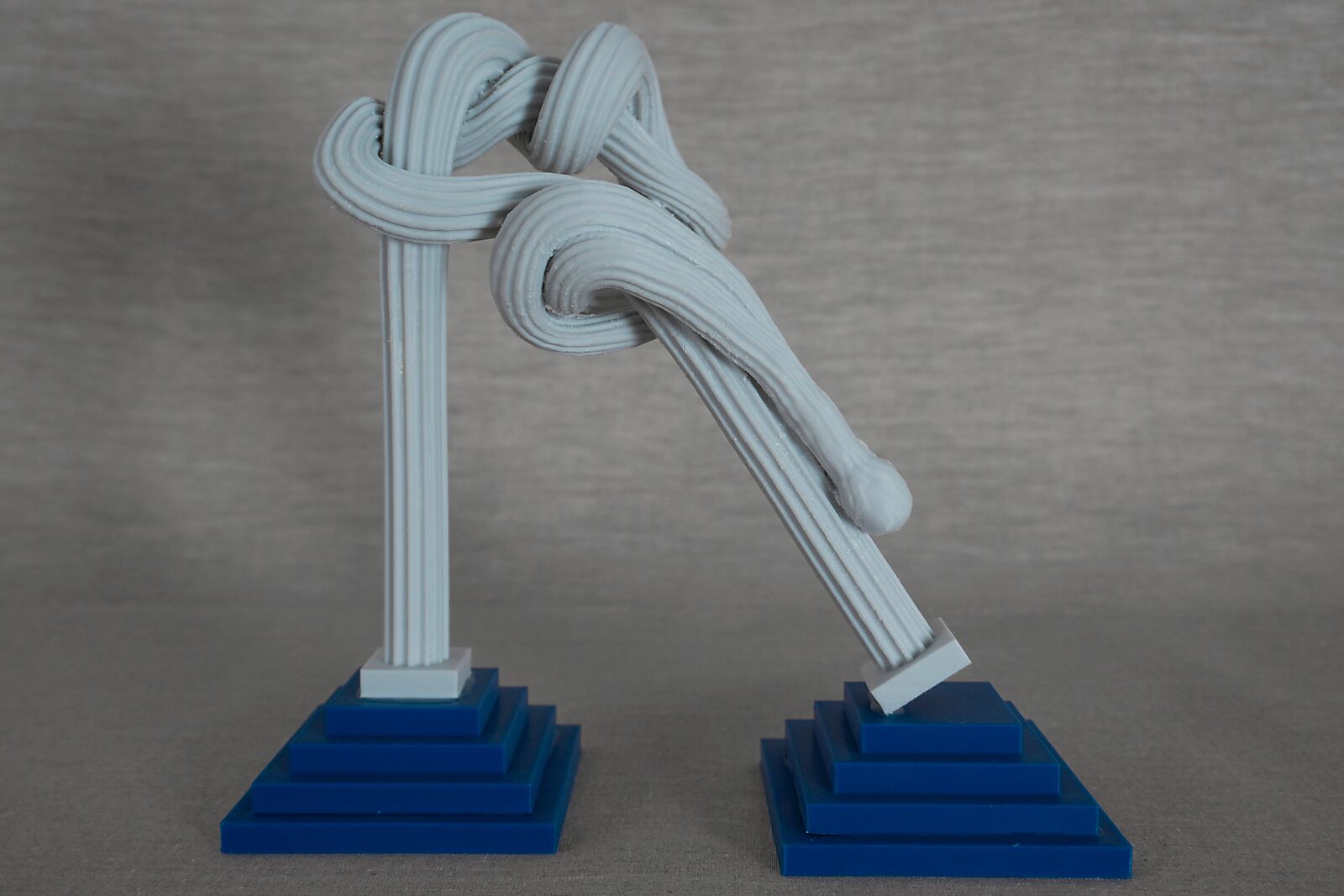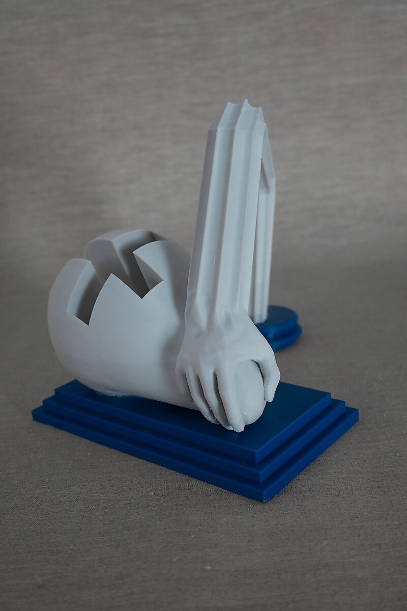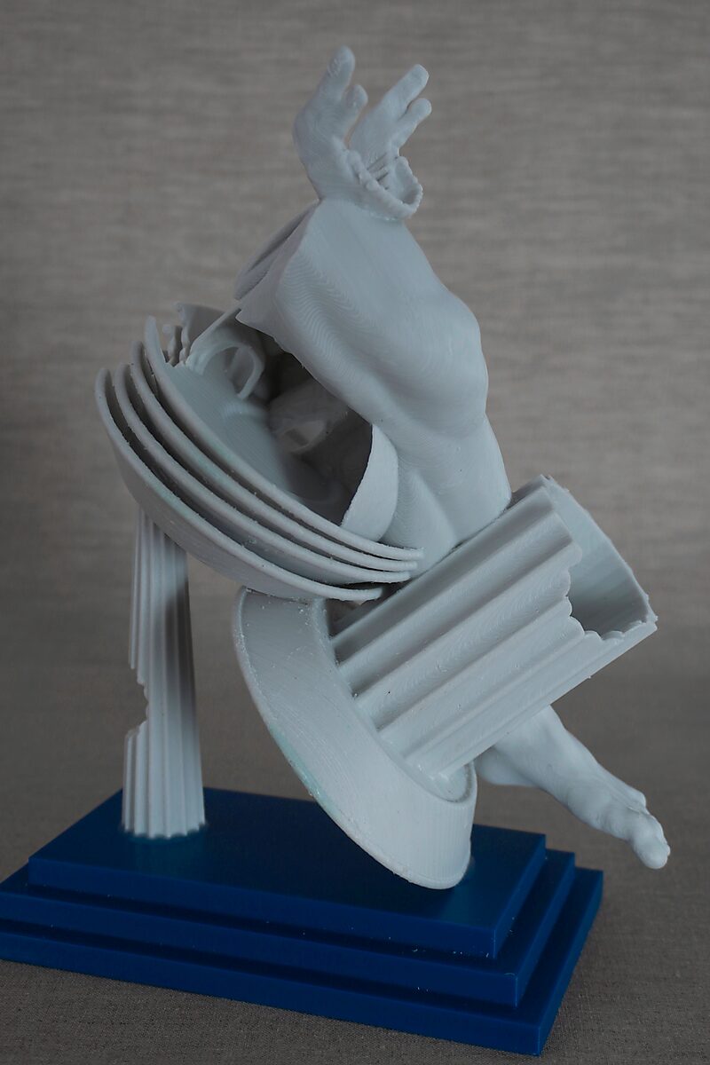 De reeks bestaat uit zeven kleine sculpturen, ontworpen in een 3D-programma en vervolgens geprint. Ze zijn uitgevoerd in witgrijs en geplaatst op blauwe sokkels — een subtiele verwijzing naar de kleuren van de Griekse vlag.