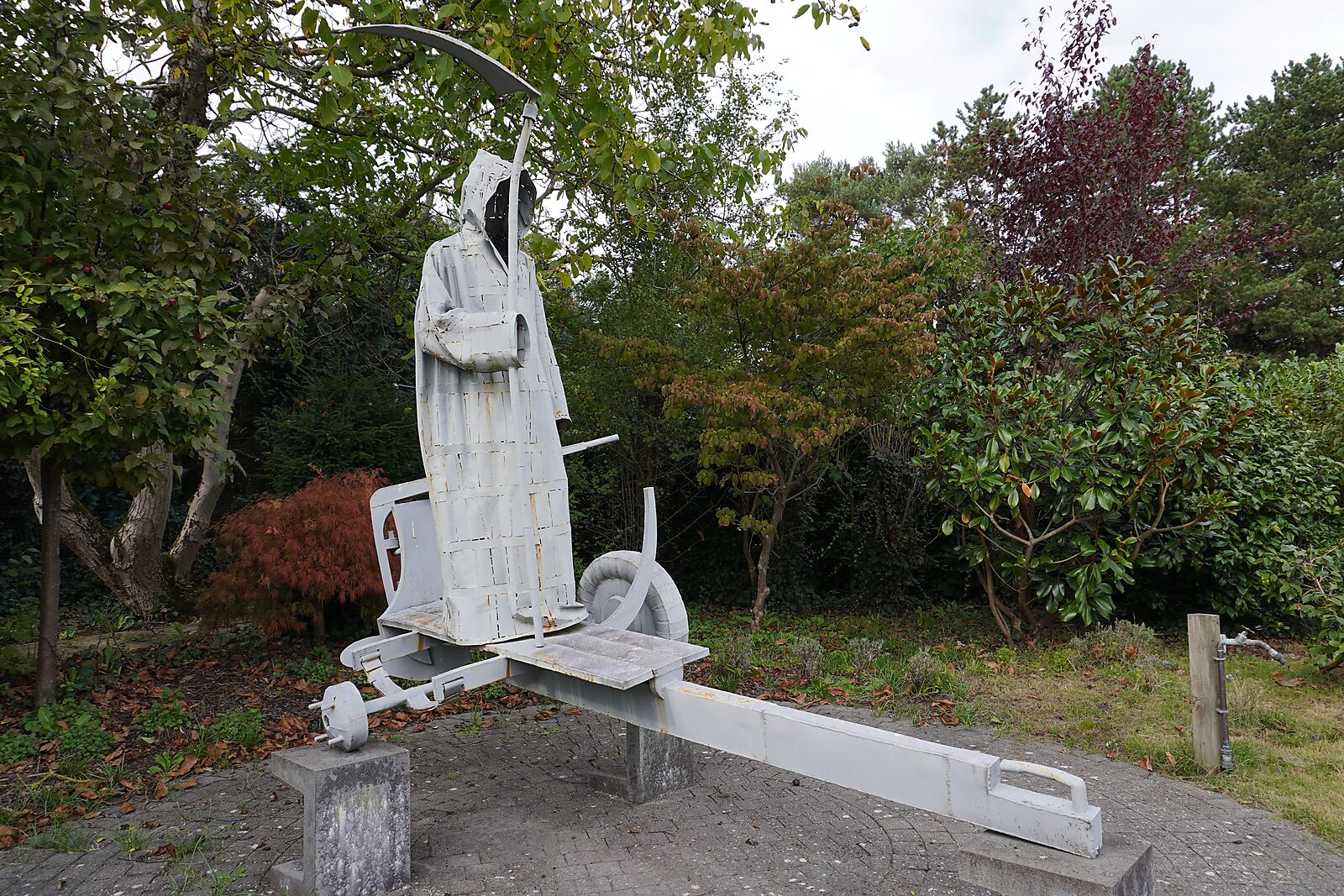De sculptuur combineert Pietje de Dood met de mythische veerman die zielen over de rivier Styx naar de onderwereld brengt. Hier wordt de dood letterlijk uit het water gelicht en op een boottrailer geplaatst. Eén wiel ontbreekt: een teken dat de overtocht stokt en dat het idee mank loopt – de dood laat zich niet omzeilen.
