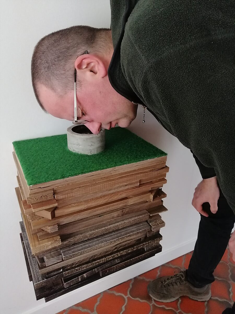Dit werk is geïnspireerd op de waterputten die vroeger vaak naast oude boerderijen stonden: open betonnen ringen met onderin water. Zulke waterputten waren gevaarlijk; er viel soms iemand in, met dramatische gevolgen.