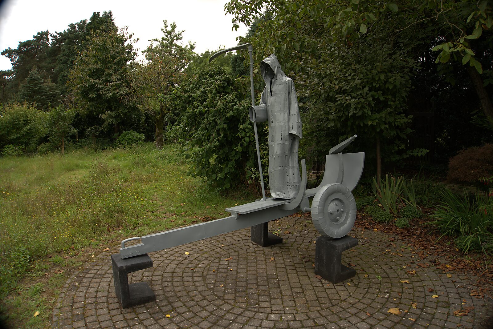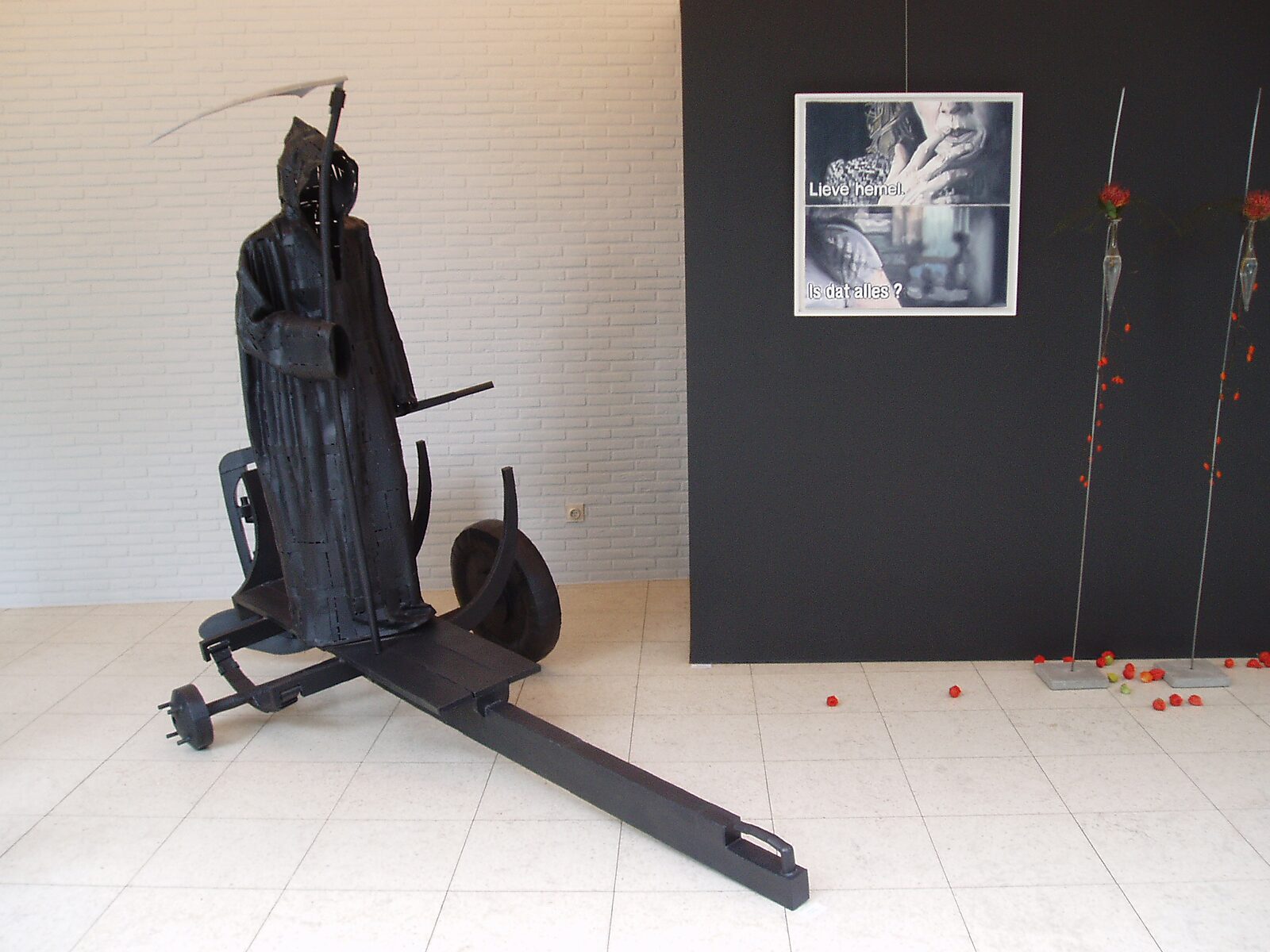 Beide werken, uitgevoerd op halve schaal, bouwen verder op Death on a Trailer (2000), een sculptuur in plaatstaal waarin de Dood al eerder even tot stilstand werd gebracht.