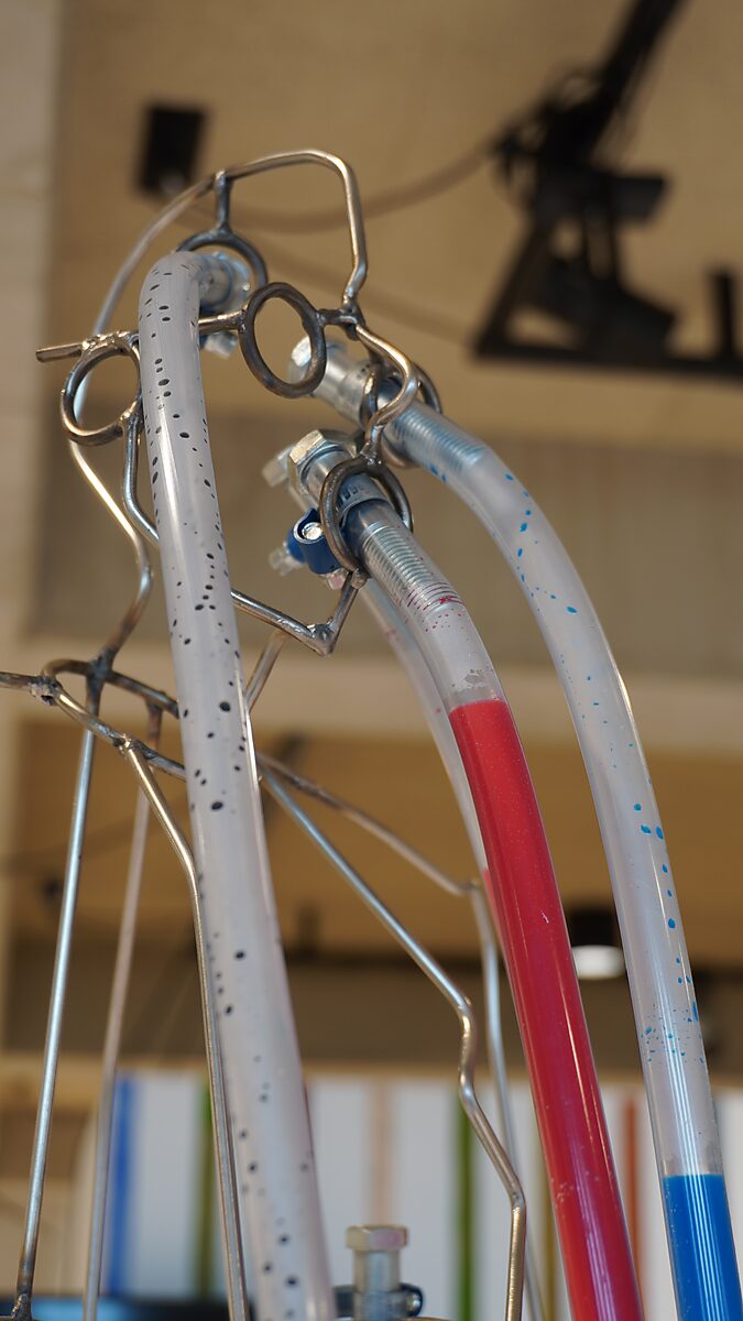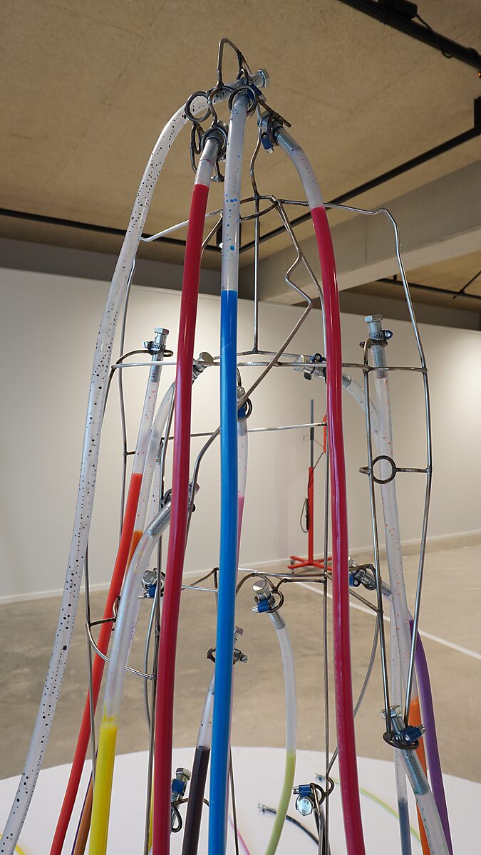 The written ribbons were replaced by transparent water hoses filled with coloured liquid. What once consisted of language — fleeting, charged, personal — became fluid, anonymous, and sensory.