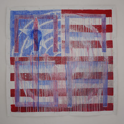 mij beter ze vierkant te maken om het effect van het doel te versterken. Zo werd het formaat 140 × 140 cm wanneer opgespannen.