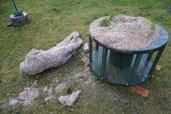In the video on the left, the mold is removed in accelerated time and the arrows are attached. In the video on the right, the birds appear and the gradual deformation unfolds until the sculpture finally toppled. Even on the ground, the birds kept feeding until it had almost completely disappeared.