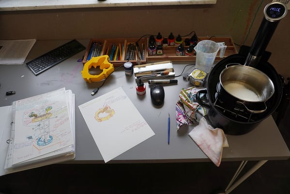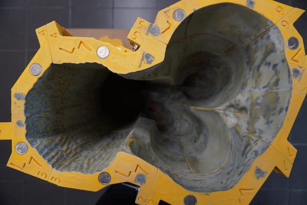 In this third project, the work appeared life-sized for the first time. The mold from the second stage was scaled up; to fit into the 3D printer, several parts had to be split in two. In total, the mold consists of about 105 pieces.