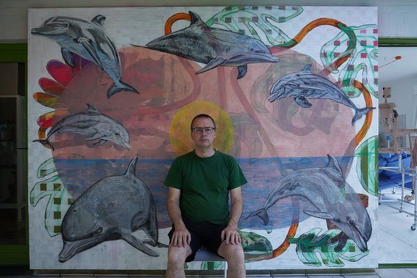 Materialen: doek, airbrushverf, inkt