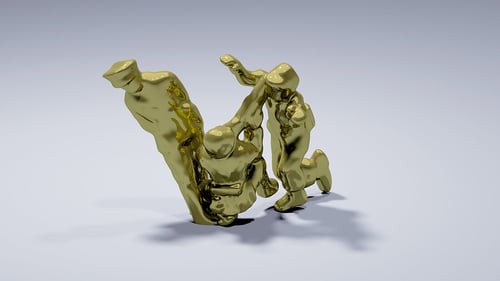 In this series of 3D animations, a statue symbolizing power bends in different contexts. What begins as a gesture of respect gradually shifts into a movement that exceeds itself. The monument bends deeper and deeper, until the gesture turns into self-satisfaction — a power that pleases itself, consuming its own reverence.