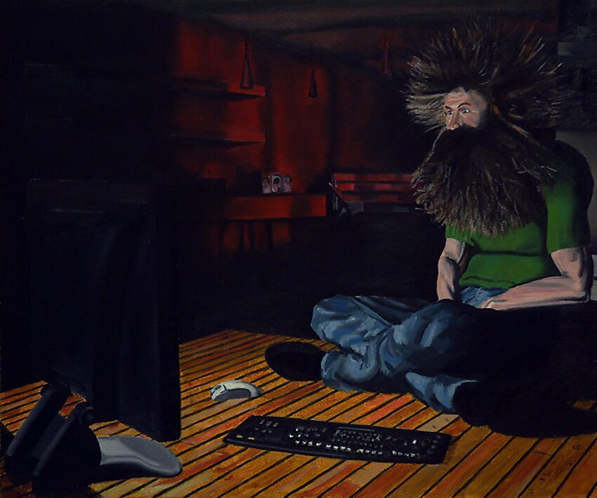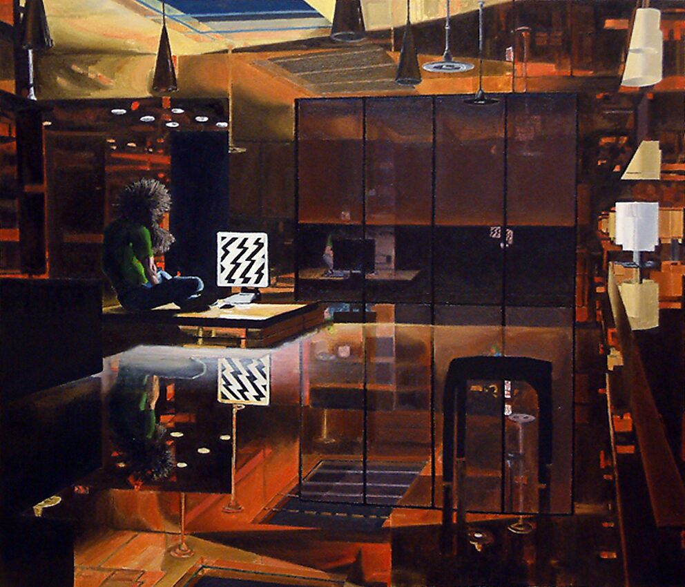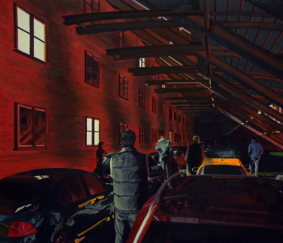 Indoor trafficjam: safety camera view - 60x50cm - Indoor trafficjam: driver view - 70x60cm - Indoor trafficjam: mouse view - 90x70cm - The modern caveman view - 60x50cm - The modern caveman; golden cage view - 70x60cm - The modern caveman: porn view - 80x50cm - The news: outside view - 50x40cm - The news: inside view - 90x70cm - The news: Martine's view - 100x50cm