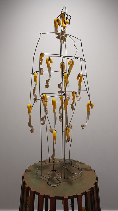 Dit kleine polyester object bestaat uit abstracte vormpjes die met scharnieren aan elkaar verbonden zijn en in verschillende posities kunnen worden gezet, waardoor de totale vorm voortdurend verandert. Het werk dateert uit 2009.