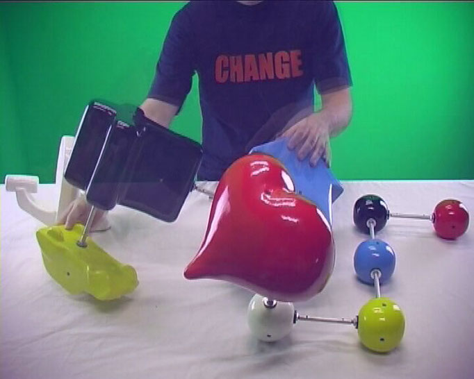 In 2013 werden extra elementen toegevoegd, zoals een tv-scherm en spiegels. De kleurveranderingen op het scherm worden erin weerkaatst, waardoor het object zelf van kleur lijkt te veranderen — een subtiel spel van reflectie en beweging. Terwijl het object stil op een spiegel ligt, tonen de schermbeelden onzichtbare handen die het manipuleren.