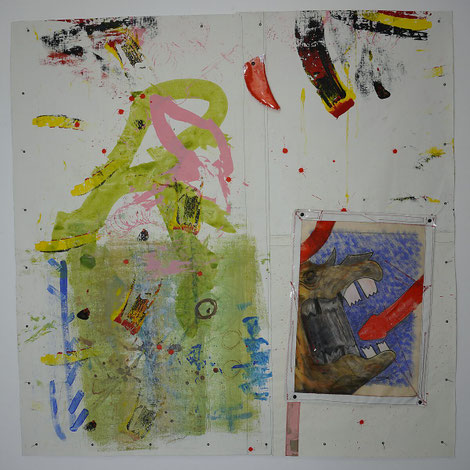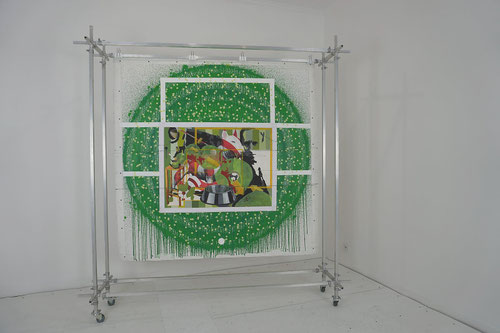 Een tekening uit 1995, een olieverfschilderij uit 2006 en een doek uit het project Smeltende doelen werden samengebracht, uit elkaar gehaald en opnieuw opgebouwd.