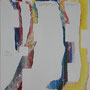 Using a silicone mould, I create small square ice blocks (5 × 5 × 3.5 cm) coloured with acrylic paint. I place one or several blocks on the canvas, wait, observe what happens, and let the paint do its work.