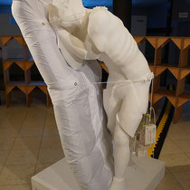 Materialen: polyurethaanschuim, houd, metaal, acrylhars, glasvezeldoek, marmerpoeder, luchtmatras, stof, suiker, koorden.