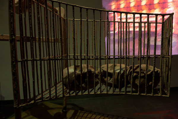 The original plan was to connect all existing artworks to the aluminum construction system. In practice, however, this work proved too heavy and unbalanced to combine with it in a stable way, unless it were to be cut into pieces.